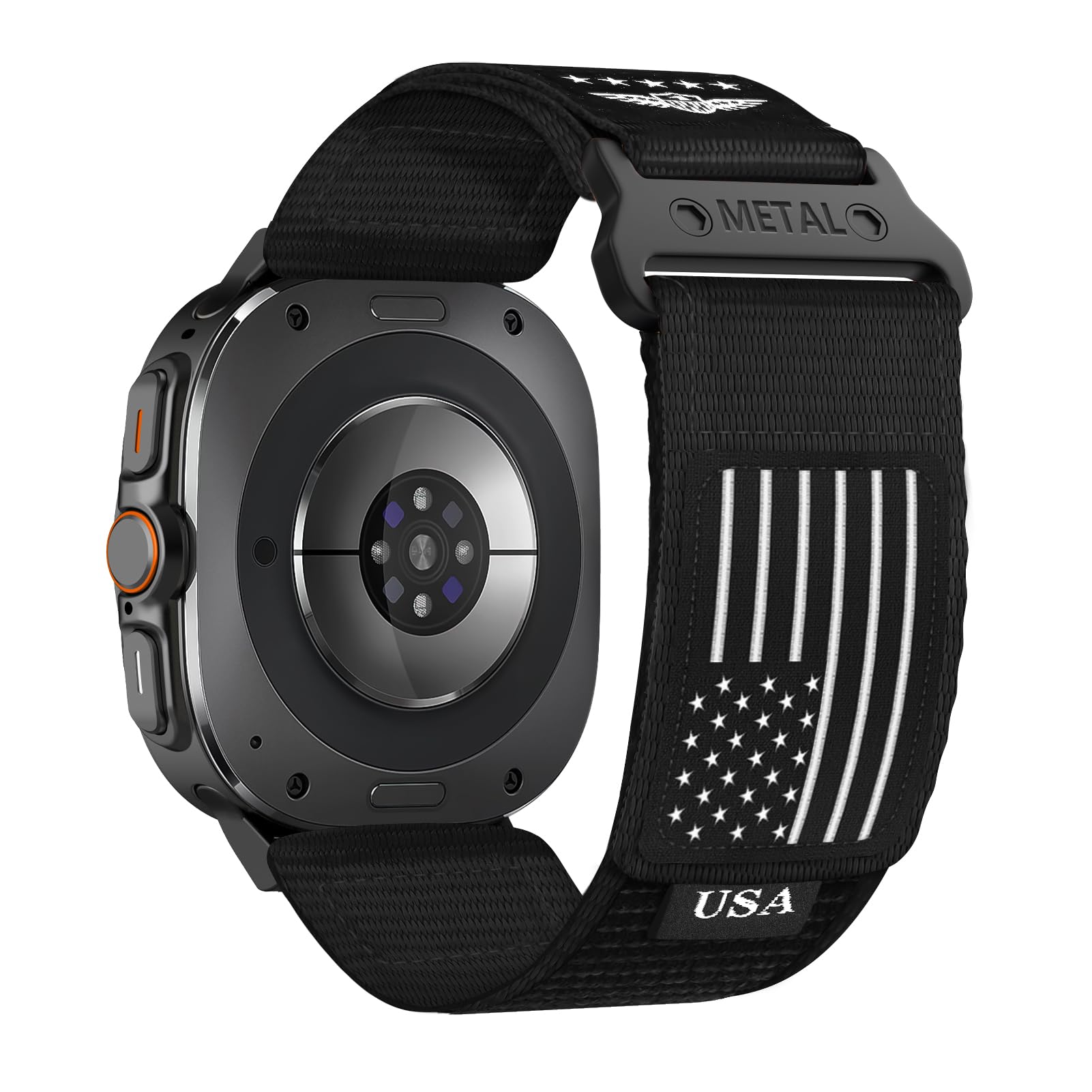 Rugged Nylon Band for Galaxy Watch Ultra Bands 47mm for Men Women,One Click No Gap Fabric Woven Wristbands Adjustable Sport Strap for Samsung Galaxy Watch 7 Ultra Band 47 mm for Man,L